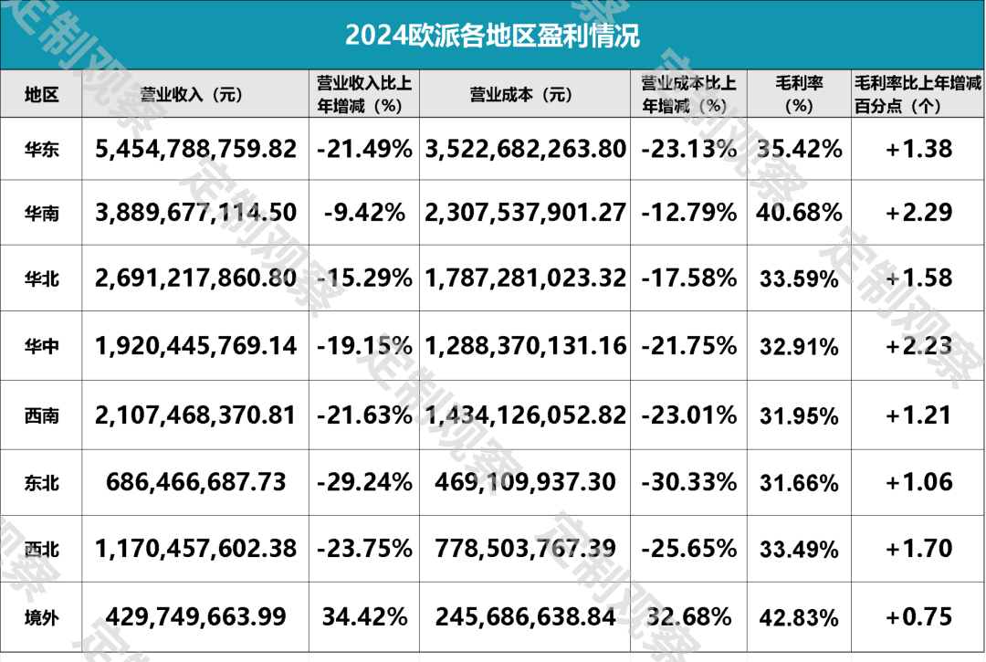 欧派家居2024年业绩承压,背后是各营收板块纷纷陷入低迷态势。