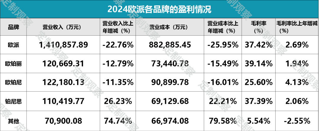 综合来看,从产品线到渠道端,各业务板块均呈现下行趋势,使得2024年欧派家居业绩增长受阻,经营挑战进一步加剧。